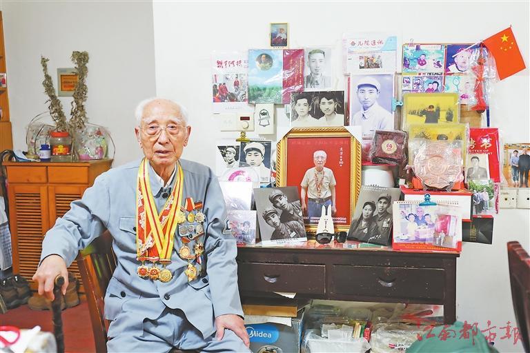 后來,李潭清學(xué)了醫(yī)護(hù)知識,成了衛(wèi)生員,跟著部隊(duì)參加了解放戰(zhàn)爭。1965年轉(zhuǎn)業(yè)后,他到江西省兒童醫(yī)院擔(dān)任臨床科政治指導(dǎo)員。1990年離休后,他更忙了,只要有學(xué)校、單位邀請,就穿上掛滿獎(jiǎng)?wù)?、紀(jì)念章的舊軍裝,走上講臺、面對鏡頭,一遍遍講述那些戰(zhàn)火里的故事。