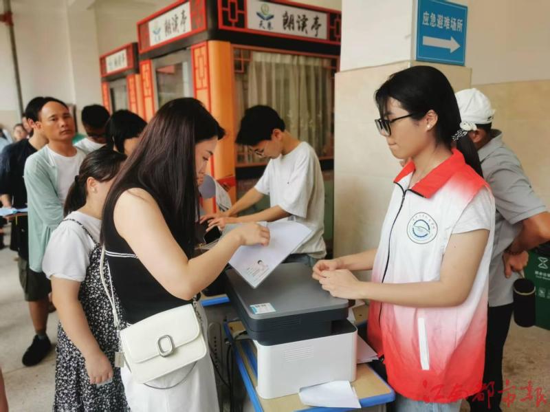 開學(xué)第一天,師生志愿者們忙得不亦樂乎,他們一個個活力四射,有的幫新生扛著行李,有的化身校園“小導(dǎo)游”。學(xué)校還為新生和家長們準(zhǔn)備了貼心的服務(wù),在教學(xué)樓一樓,設(shè)置了免費復(fù)印處,志愿者們熟練操作著復(fù)印機(jī),每層樓設(shè)有免費的飲用水供應(yīng)點。