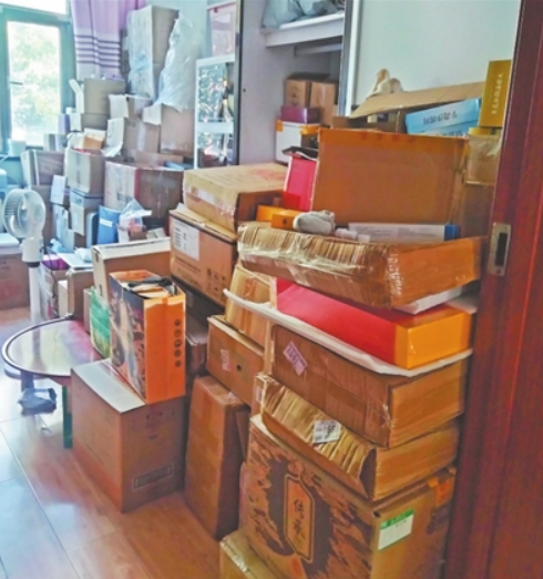 “我家是‘3室2衛(wèi)’,現(xiàn)在有一間衛(wèi)生間堆滿了快遞盒,她一天少則四五個,多則十幾個快遞,整個家都快變成倉庫了。”周女士告訴記者,母親萬女士今年已經(jīng)84歲了,她為了學(xué)習(xí)柔力球而進入直播間,卻為兌換免費禮品沉迷其中。如今,她的房間堆滿了從直播間買來的各種商品,衛(wèi)生間里更連站腳的地方都沒有。