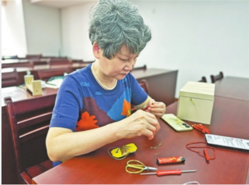 南昌市老年大學(xué)的老人正在編制“中國(guó)結(jié)”。