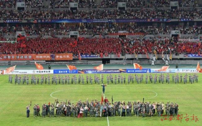 “若要盼得紅軍來,嶺上開遍映山紅”,吉安主場(chǎng)響起《映山紅》的熟悉旋律,喚醒“刻在骨子里的紅色基因”;九江主場(chǎng)的《為了誰(shuí)》情景演出,將賽場(chǎng)內(nèi)外思緒集體拉回到九八抗洪時(shí),軍民攜手守堤的感人場(chǎng)景。