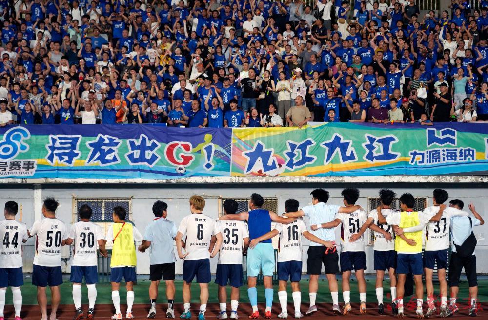 7月20日,九江隊(duì)球員在賽后與球迷互動(dòng)。新華社記者 萬(wàn)象 攝
